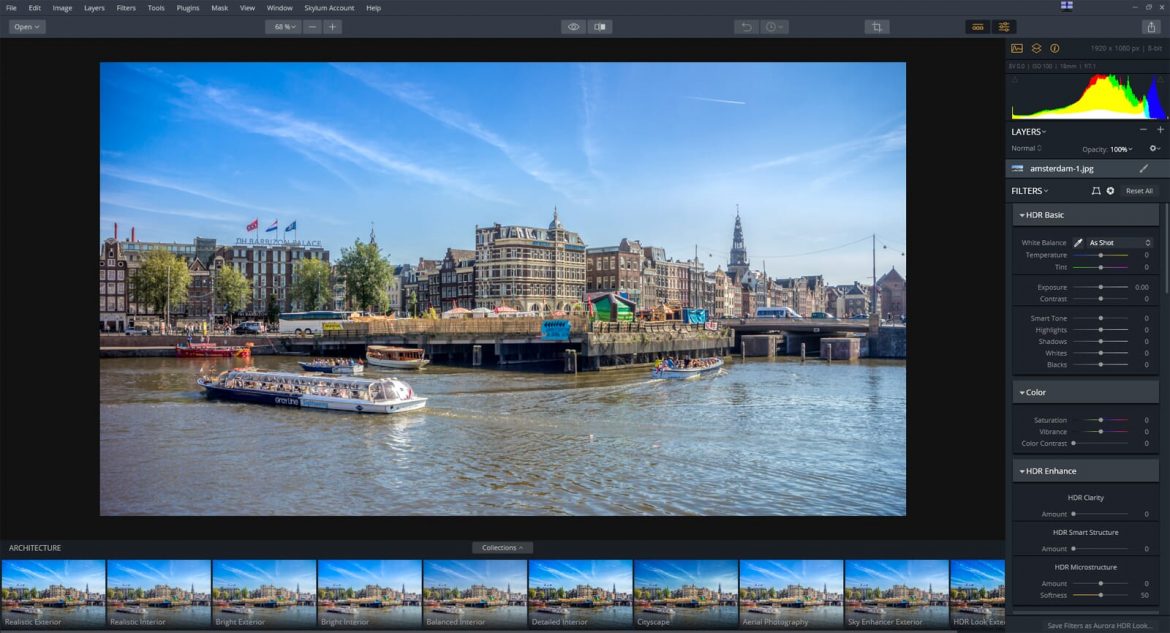 Aurora HDR has a simple layout that’s user-friendly. On the right-hand side, there’s the main adjustment toolbar used to change the image parameters.